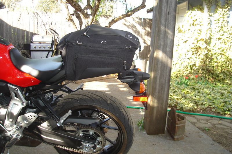 Reflective piping worked well, oddly enough, most of the motorcycle tail bags I looked at did not have this.